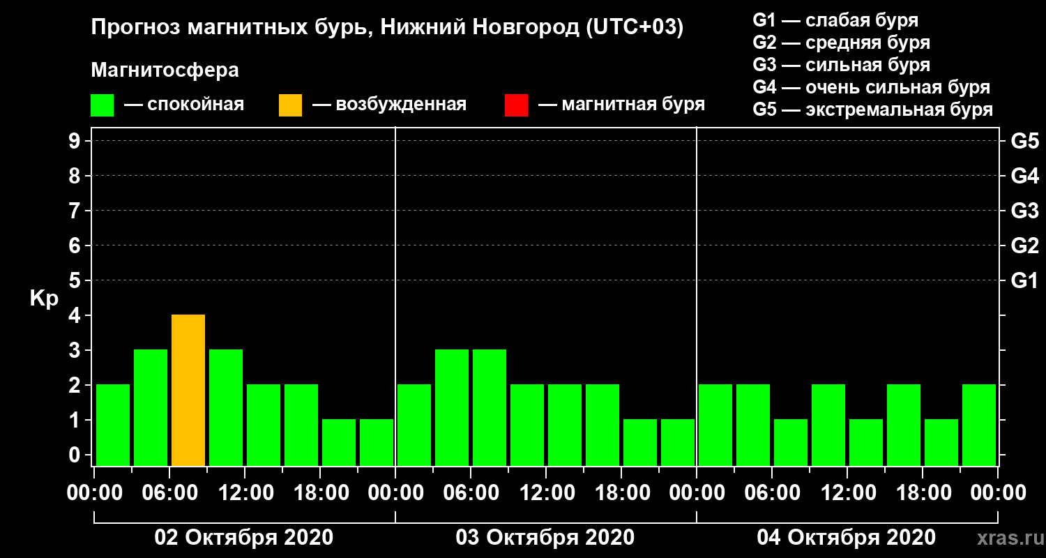 Прогноз магнитных бурь Нижнем Новгороде на 2 октября 2020 года