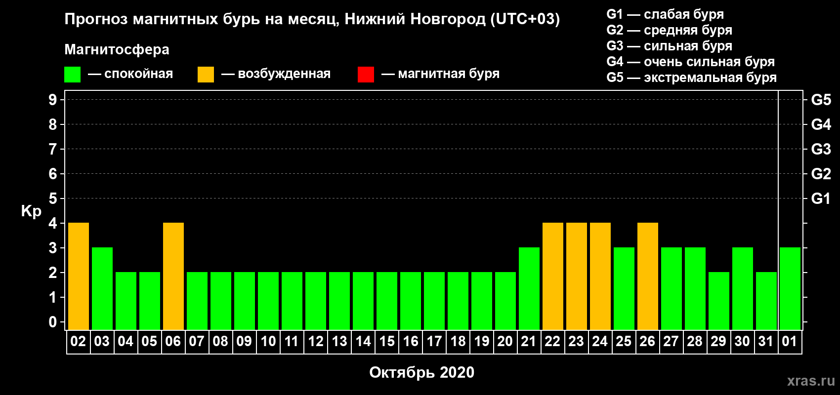Прогноз магнитных бурь Нижнем Новгороде — 2 октября 2020 года