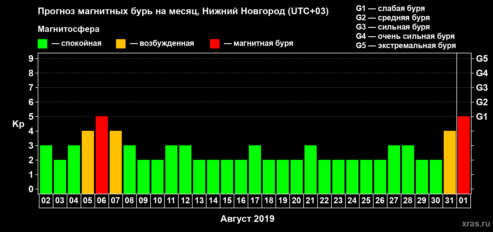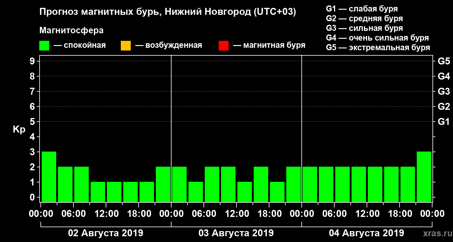 Прогноз магнитных бурь Нижнем Новгороде на 2 августа 2019 года