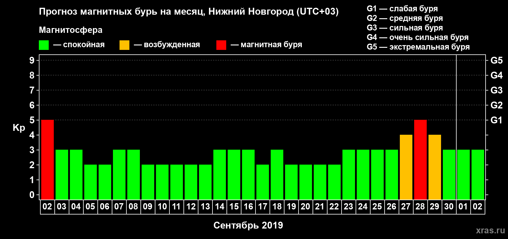 Прогноз магнитных бурь Нижнем Новгороде на 2 сентября 2019 года