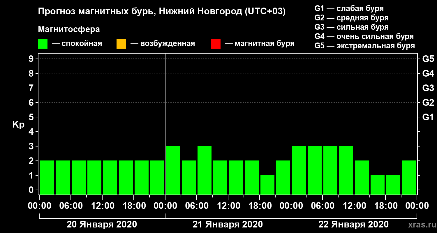 Прогноз магнитных бурь Нижнем Новгороде на 20 января 2020 года