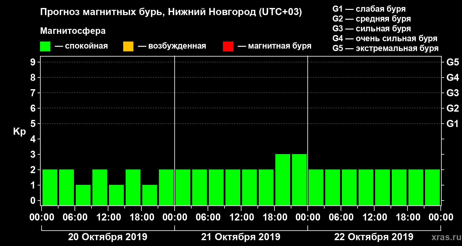 Прогноз магнитных бурь Нижнем Новгороде на 20 октября 2019 года
