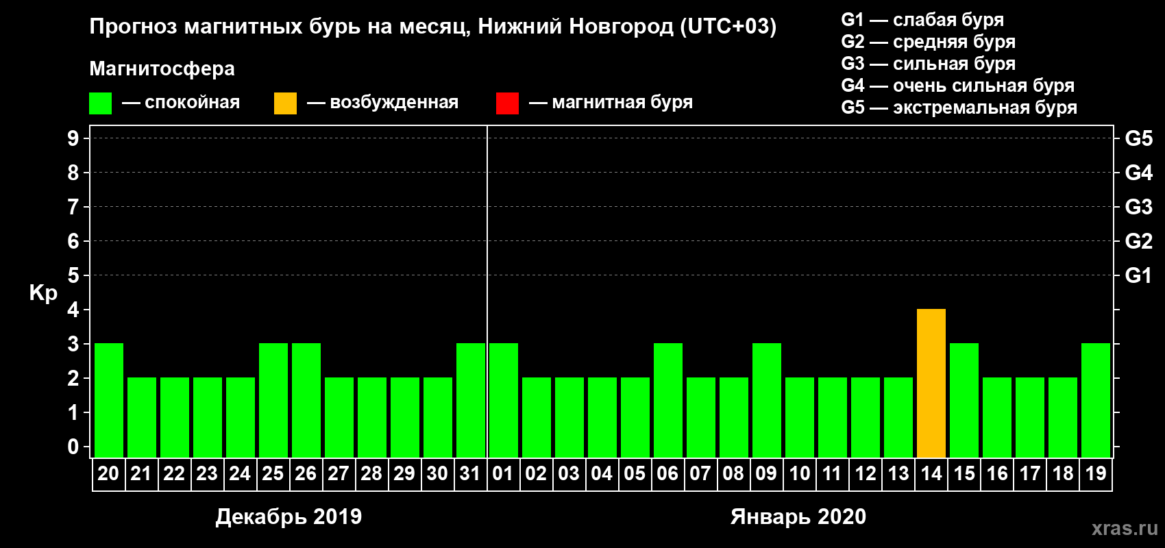 Прогноз магнитных бурь Нижнем Новгороде — 20 декабря 2019 года