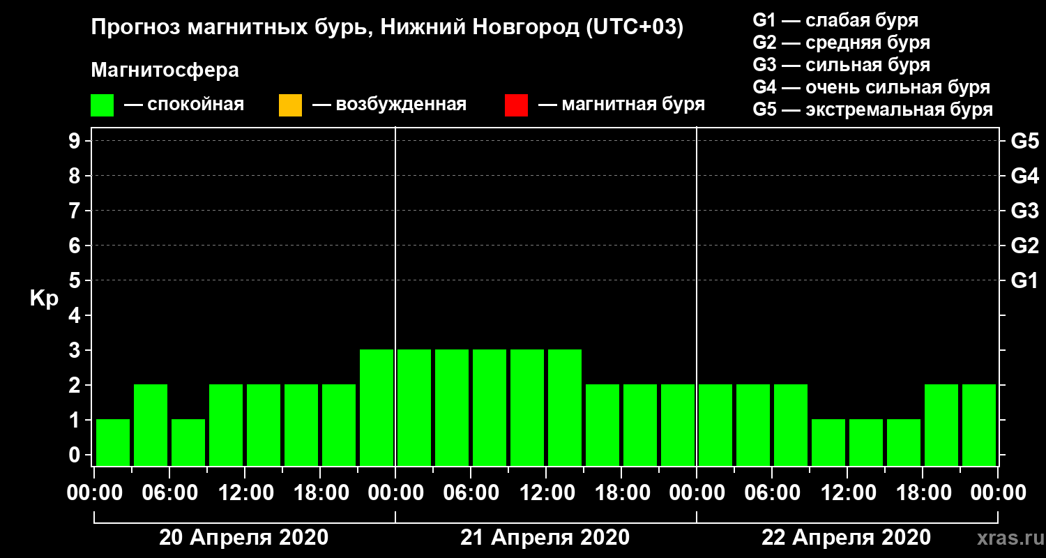 Прогноз магнитных бурь Нижнем Новгороде на 20 апреля 2020 года