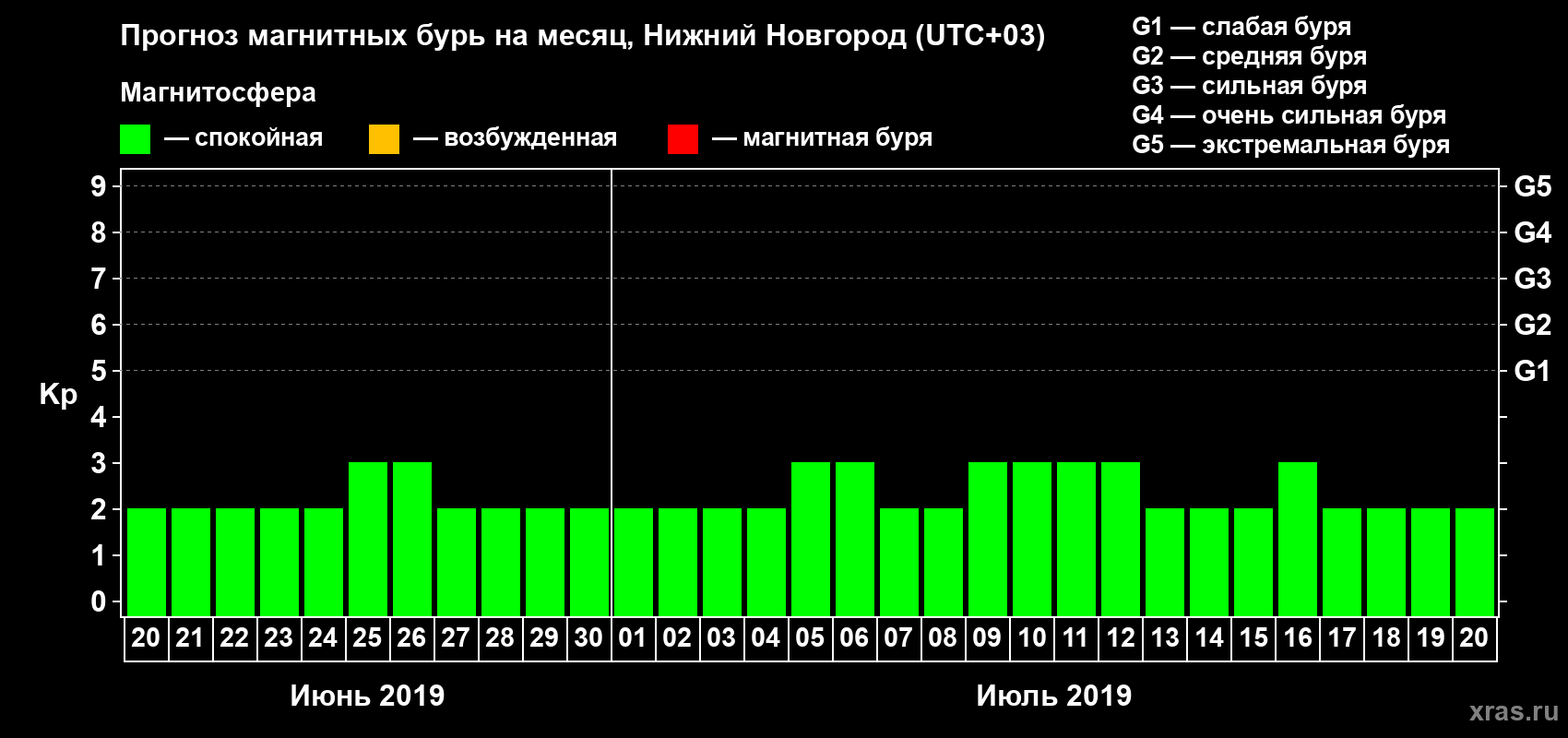 Прогноз магнитных бурь Нижнем Новгороде — 20 июня 2019 года