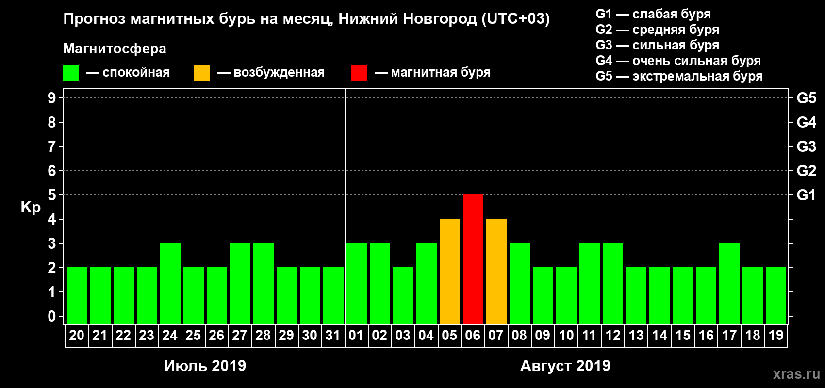 Прогноз магнитных бурь Нижнем Новгороде — 20 июля 2019 года
