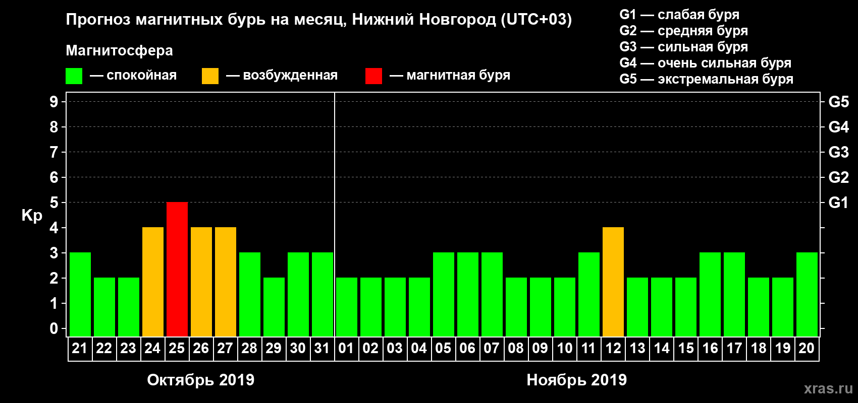 Прогноз магнитных бурь Нижнем Новгороде на 21 октября 2019 года