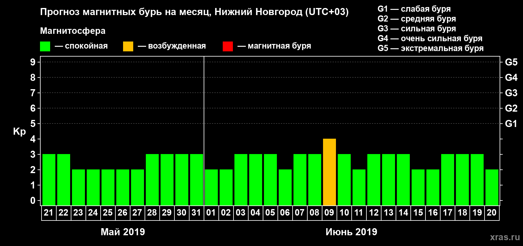 Прогноз магнитных бурь Нижнем Новгороде — 21 мая 2019 года