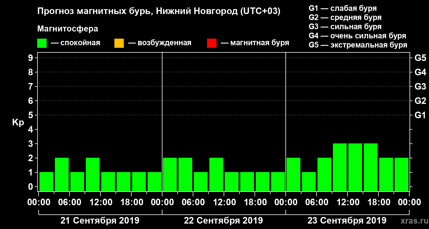 Прогноз магнитных бурь Нижнем Новгороде на 21 сентября 2019 года