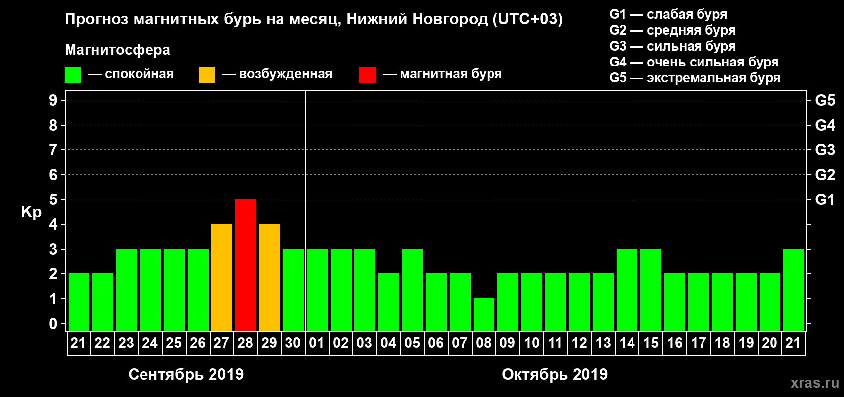 Прогноз магнитных бурь Нижнем Новгороде — 21 сентября 2019 года