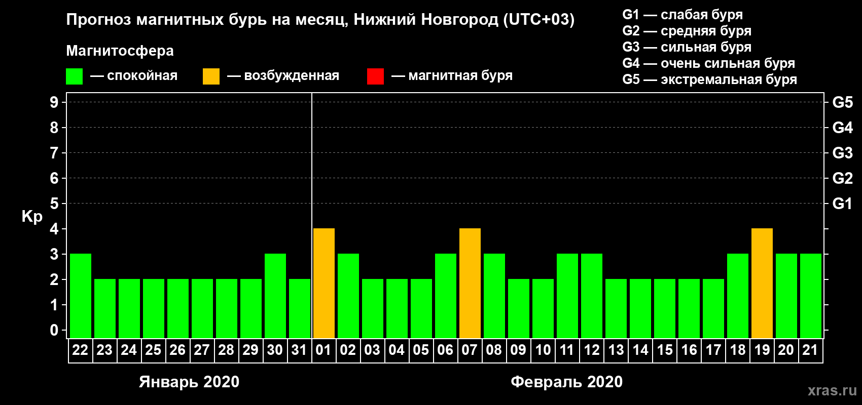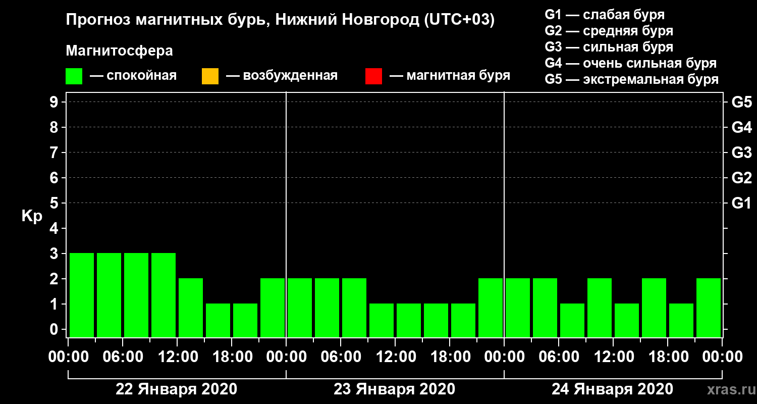 Прогноз магнитных бурь Нижнем Новгороде на 22 января 2020 года