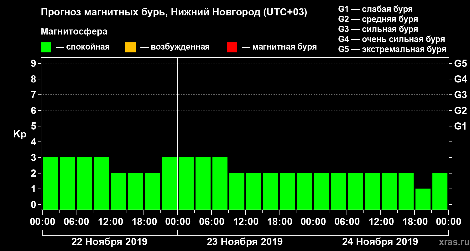 Прогноз магнитных бурь Нижнем Новгороде — 22 ноября 2019 года