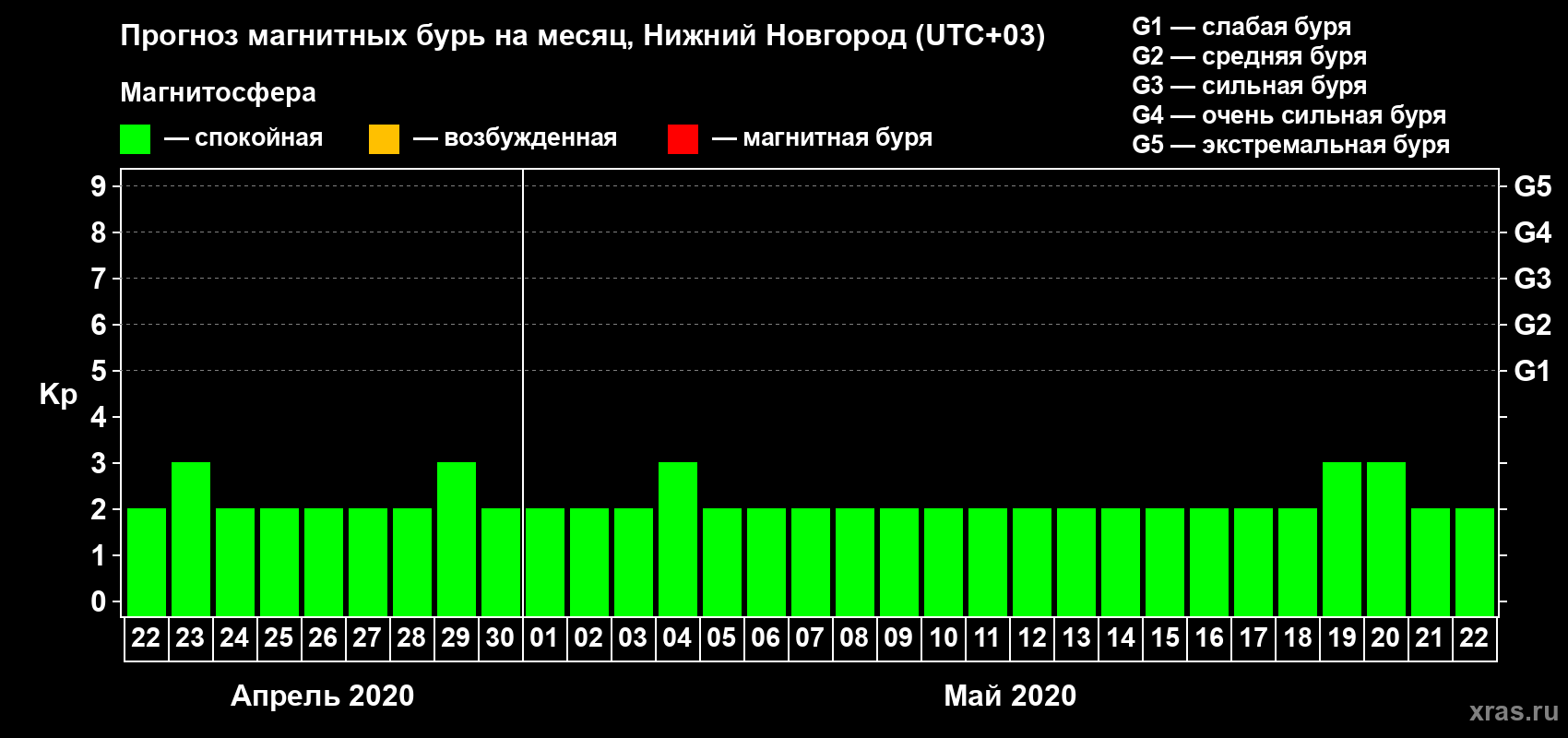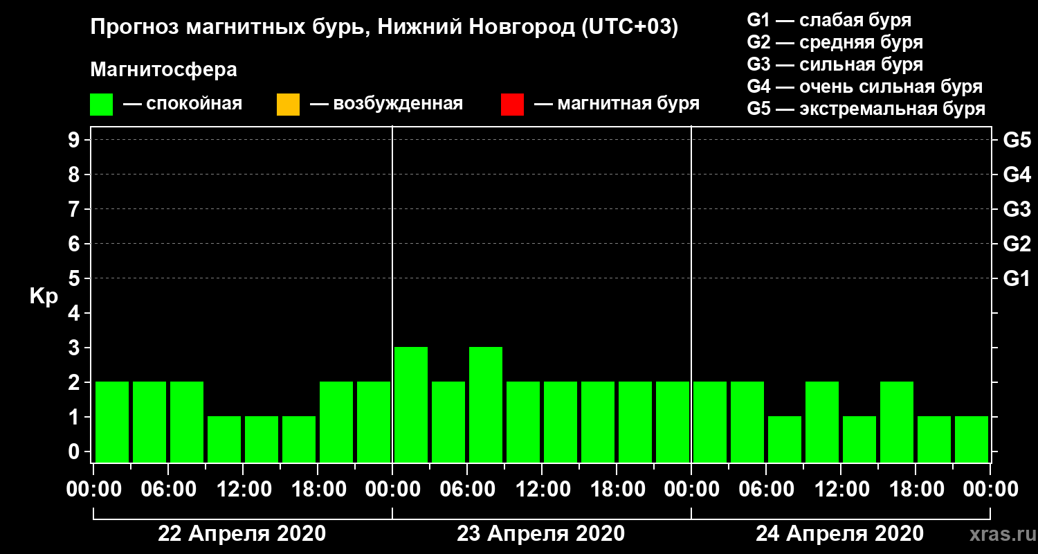 Прогноз магнитных бурь Нижнем Новгороде на 22 апреля 2020 года