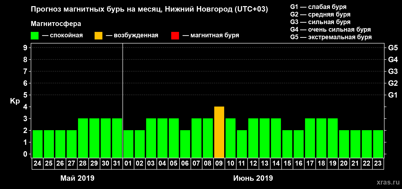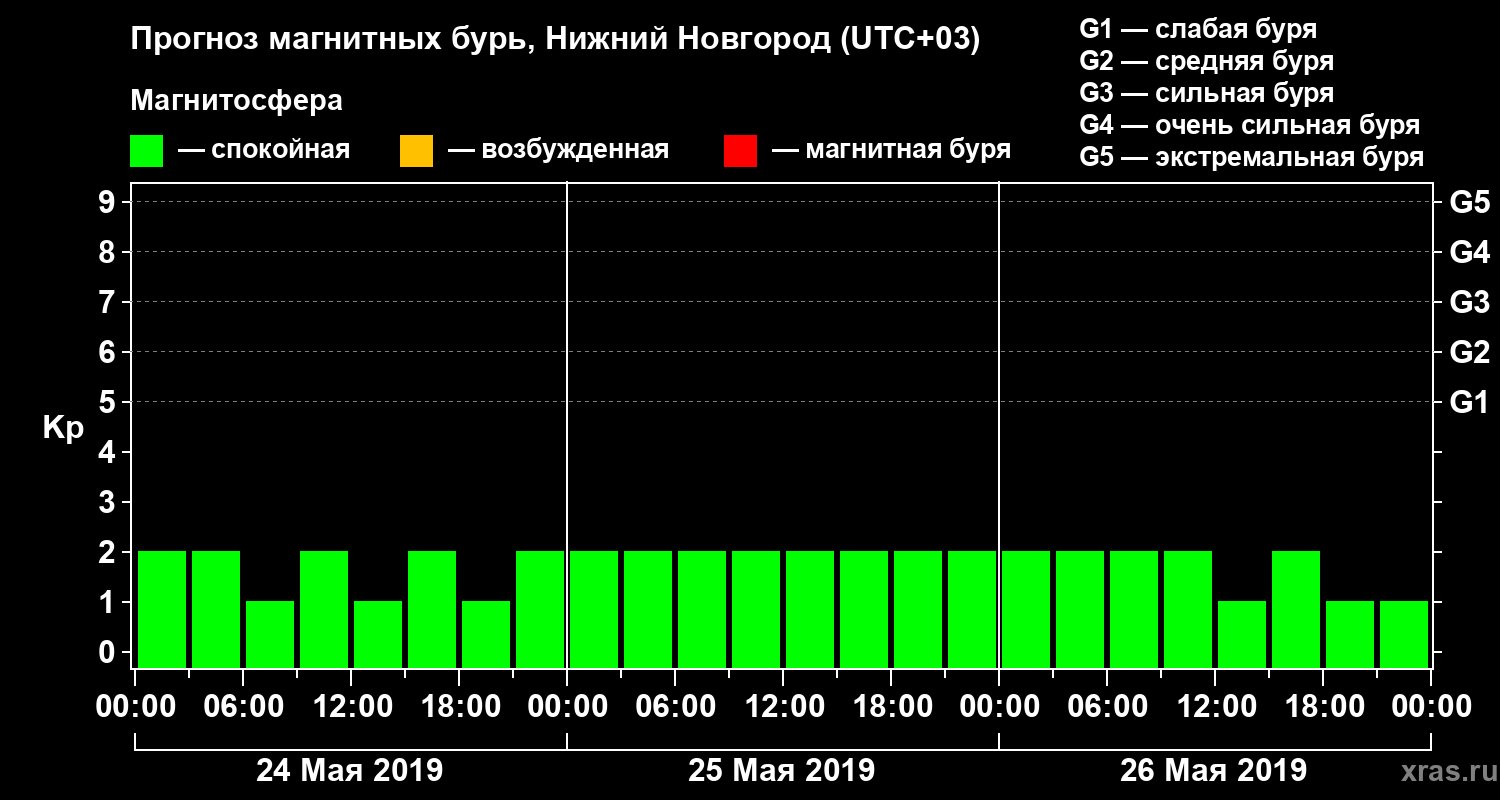 Прогноз магнитных бурь Нижнем Новгороде на 24 мая 2019 года