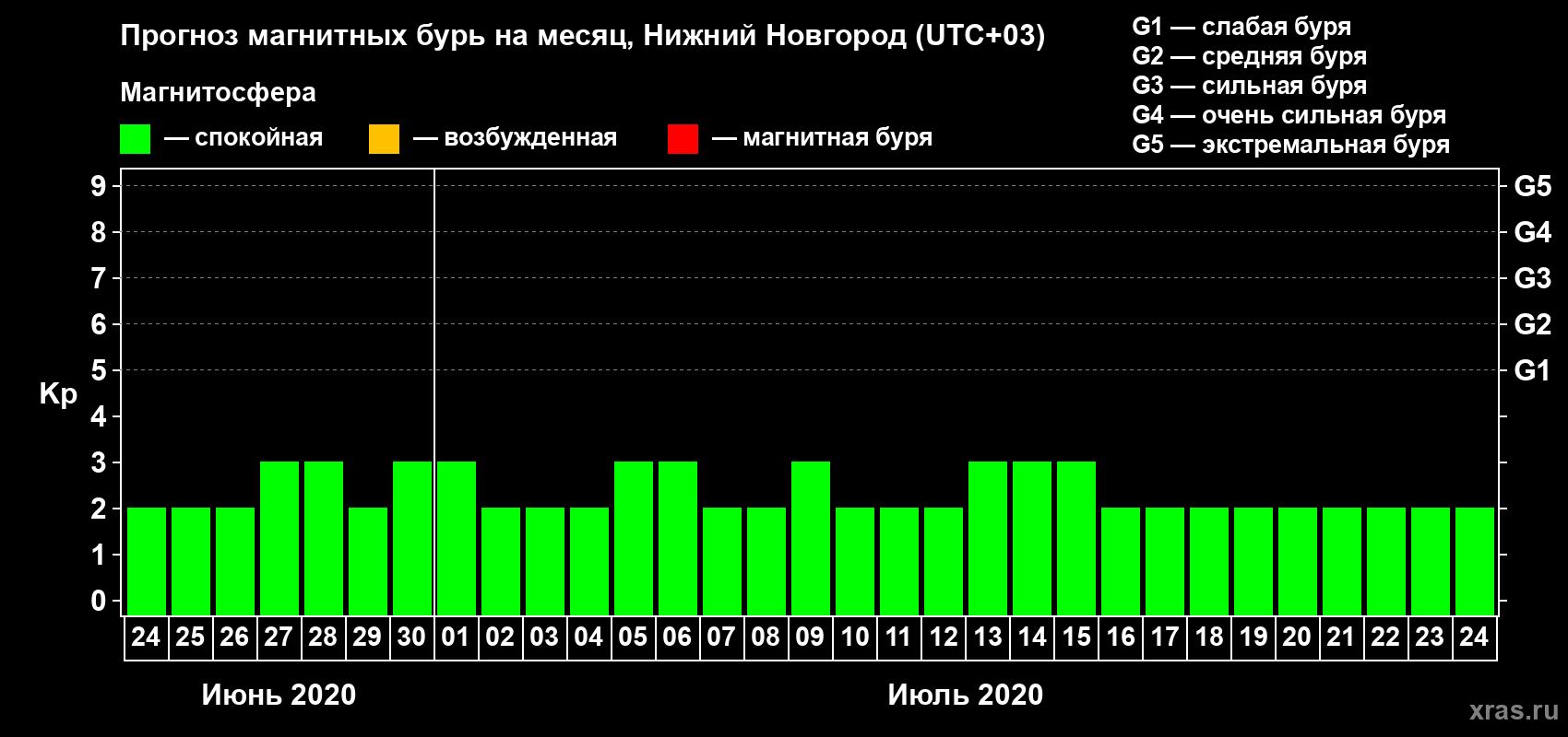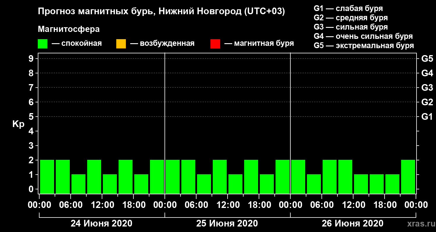 Прогноз магнитных бурь Нижнем Новгороде на 24 июня 2020 года