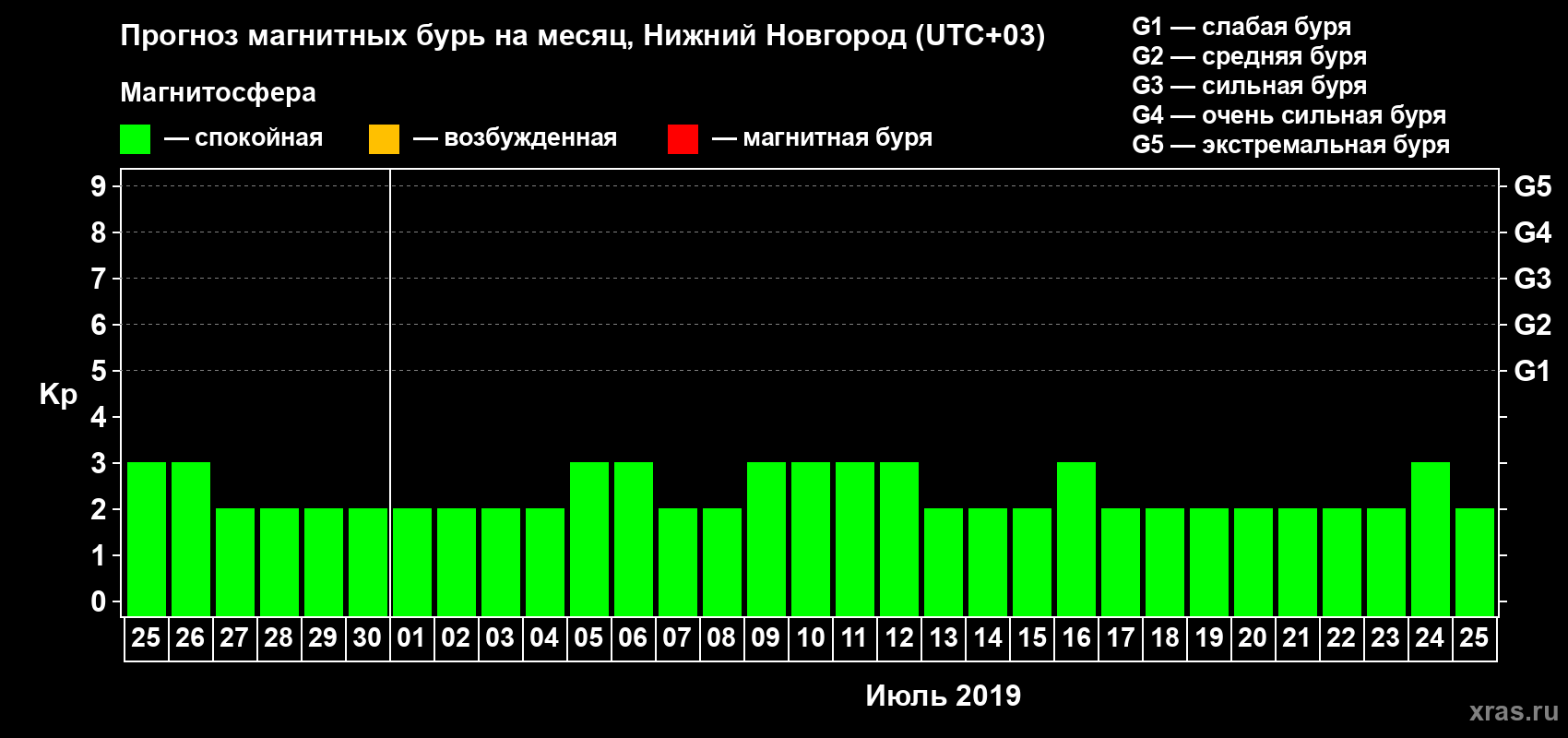 Прогноз магнитных бурь Нижнем Новгороде — 25 июня 2019 года