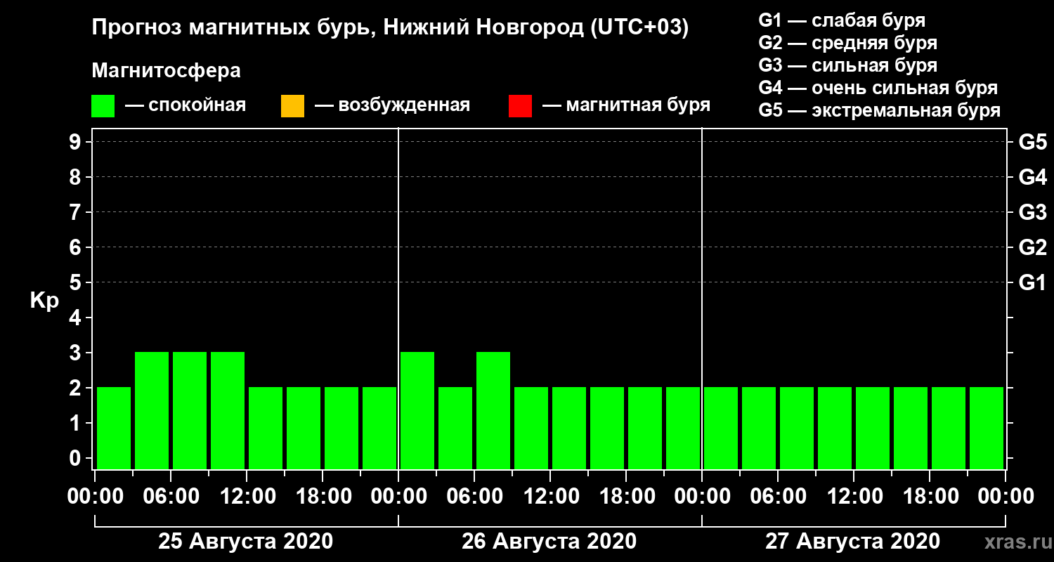 Прогноз магнитных бурь Нижнем Новгороде на 25 августа 2020 года