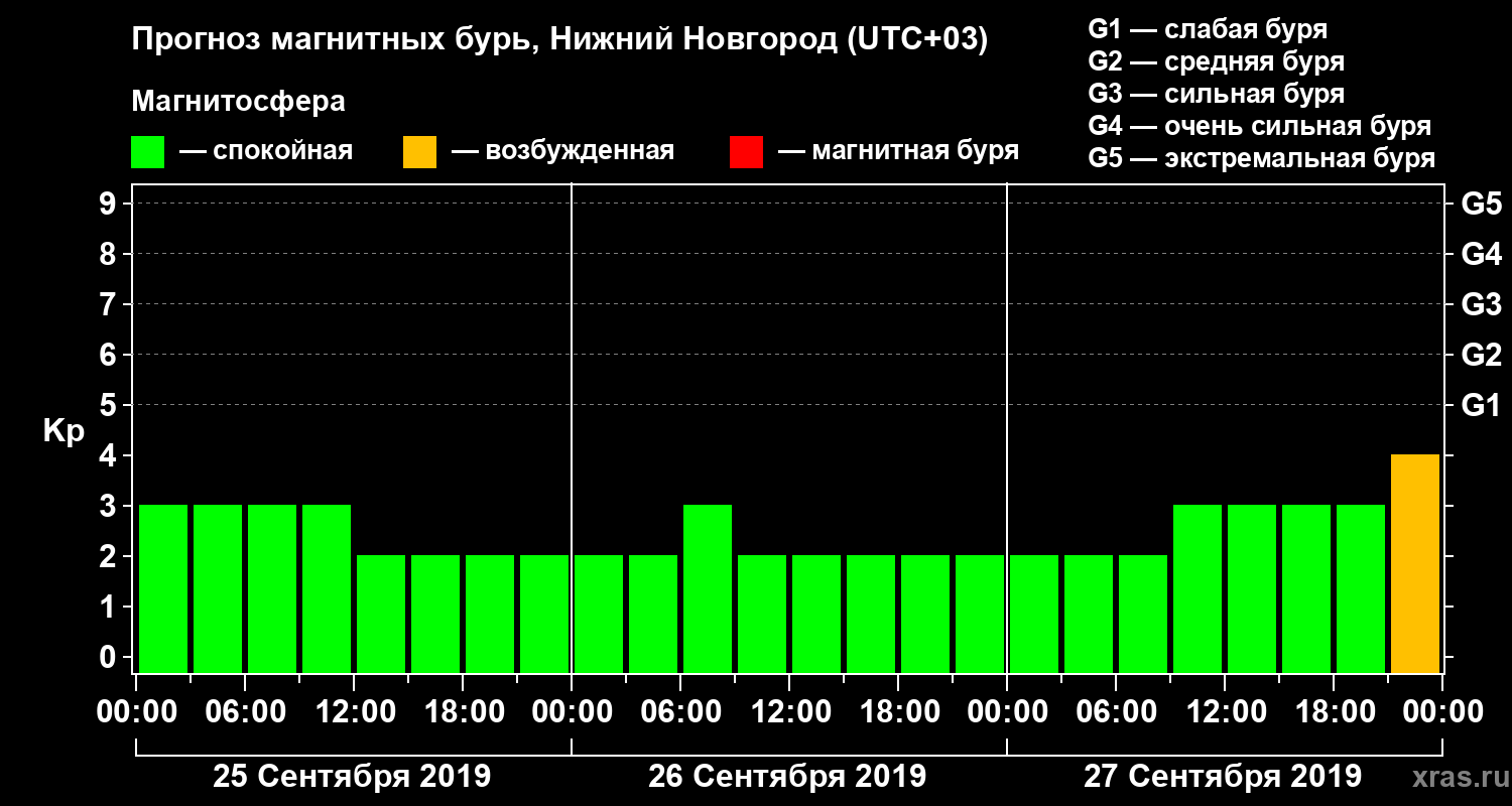 Прогноз магнитных бурь Нижнем Новгороде на 25 сентября 2019 года
