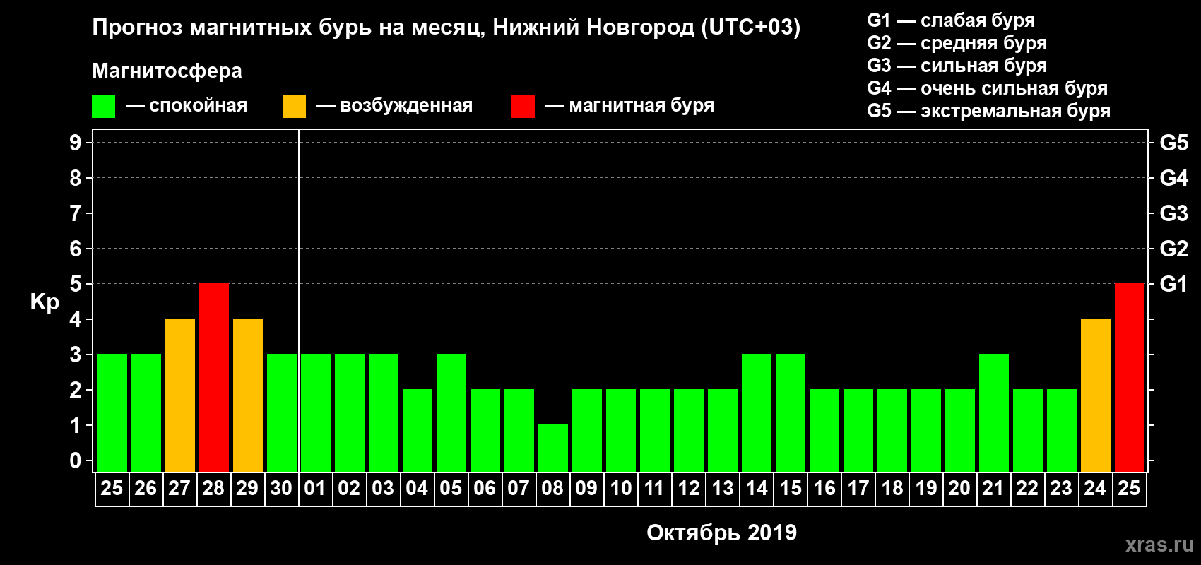 Прогноз магнитных бурь Нижнем Новгороде — 25 сентября 2019 года