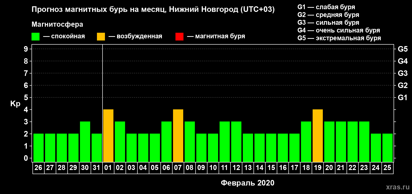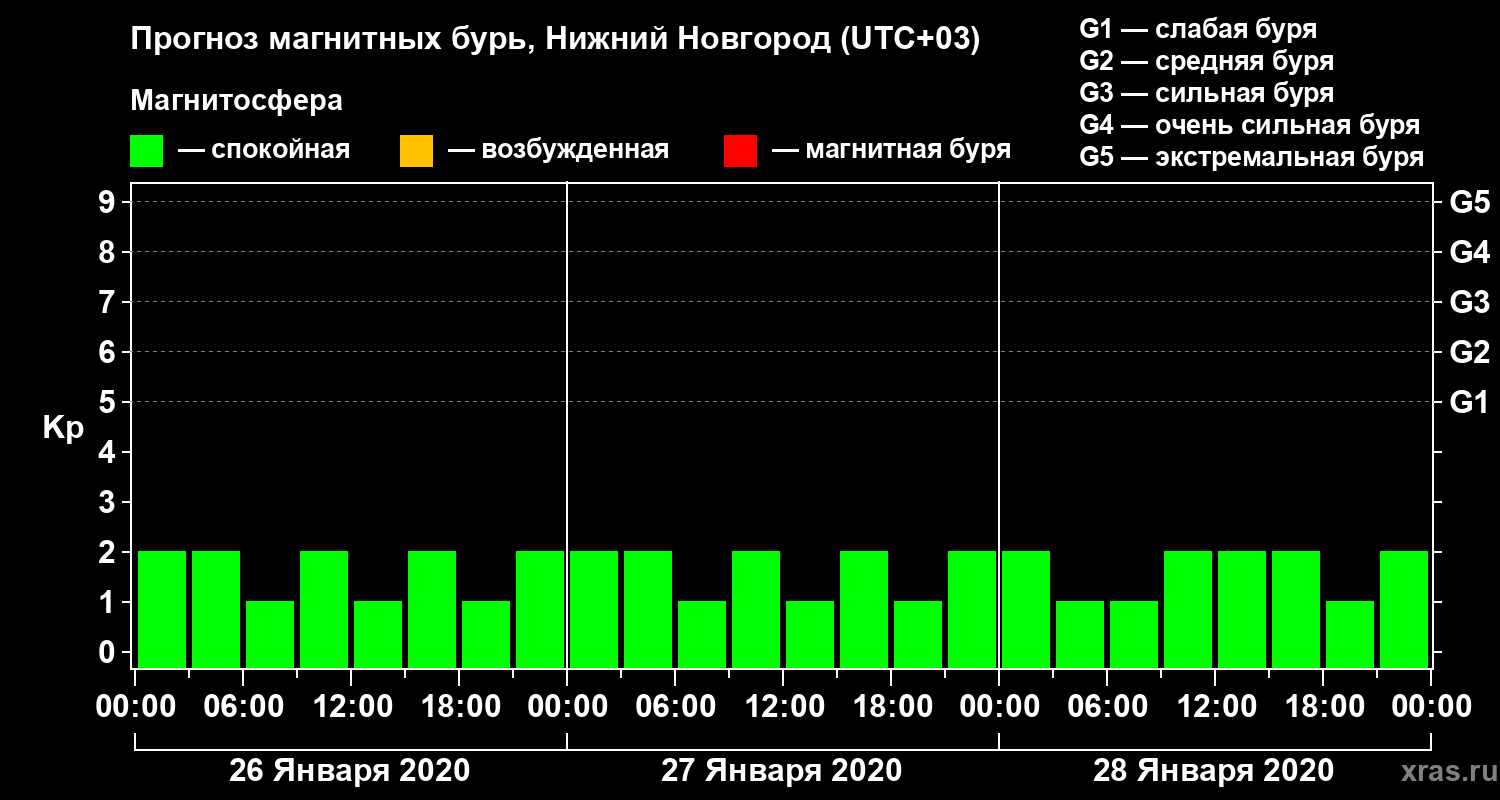 Прогноз магнитных бурь Нижнем Новгороде на 26 января 2020 года