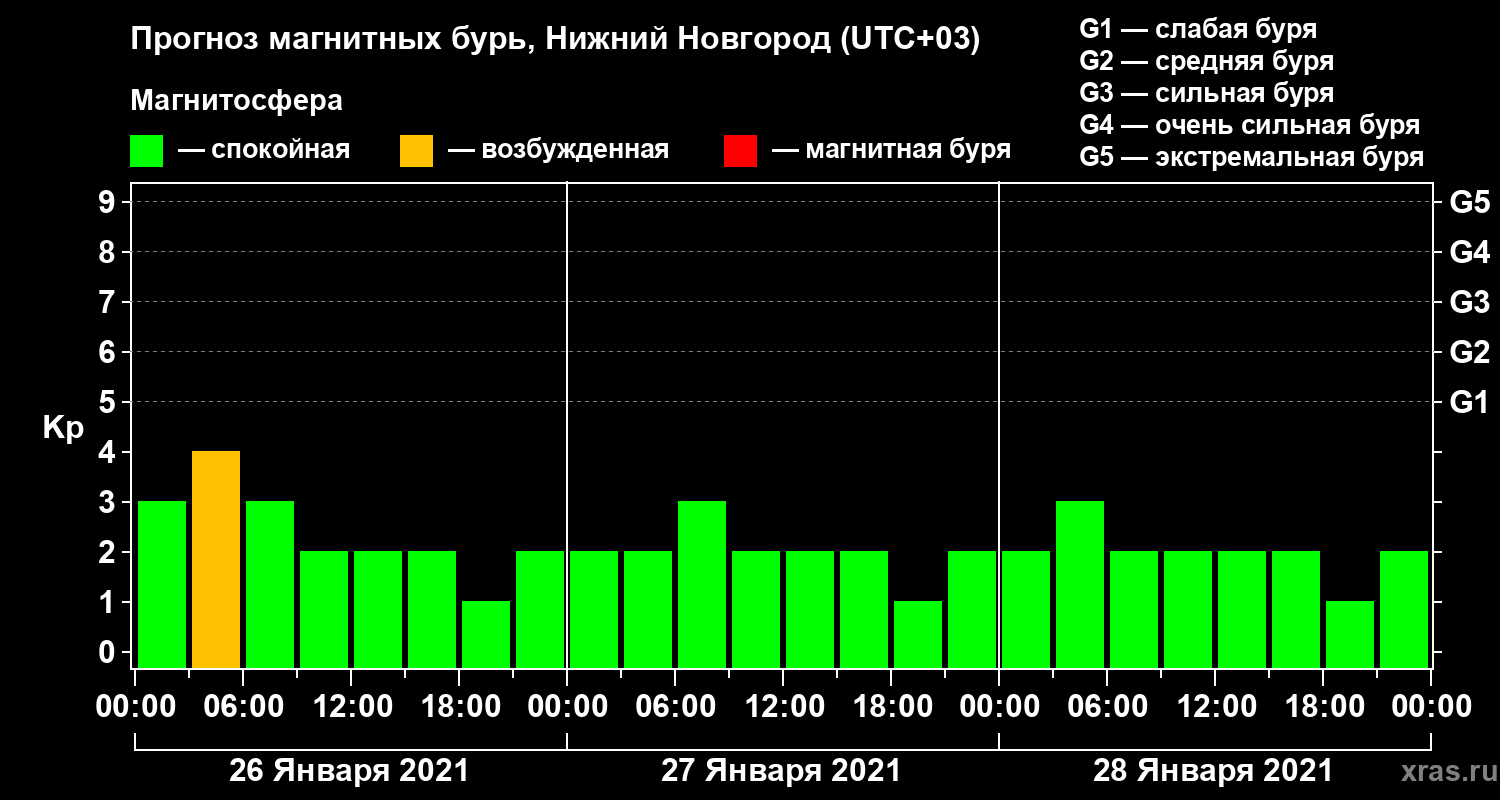 Прогноз магнитных бурь Нижнем Новгороде — 26 января 2021 года