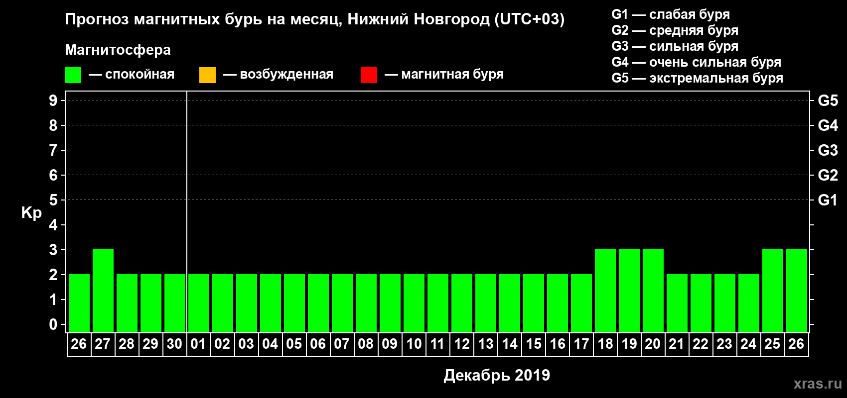 Прогноз магнитных бурь Нижнем Новгороде — 26 ноября 2019 года