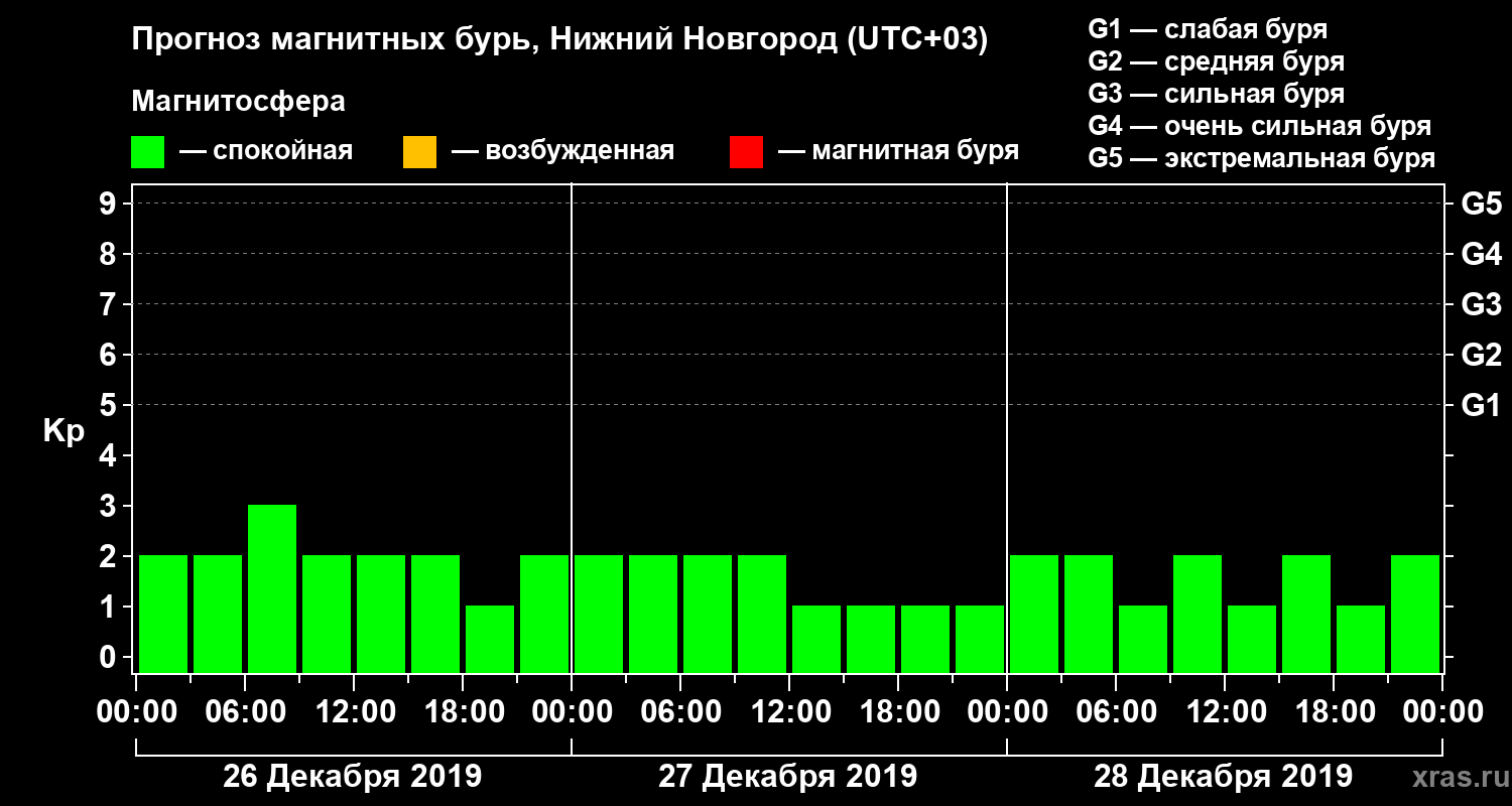 Прогноз магнитных бурь Нижнем Новгороде на 26 декабря 2019 года