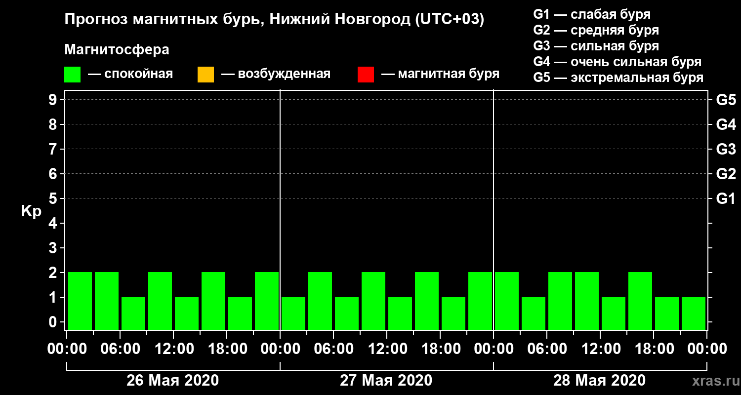 Прогноз магнитных бурь Нижнем Новгороде на 26 мая 2020 года
