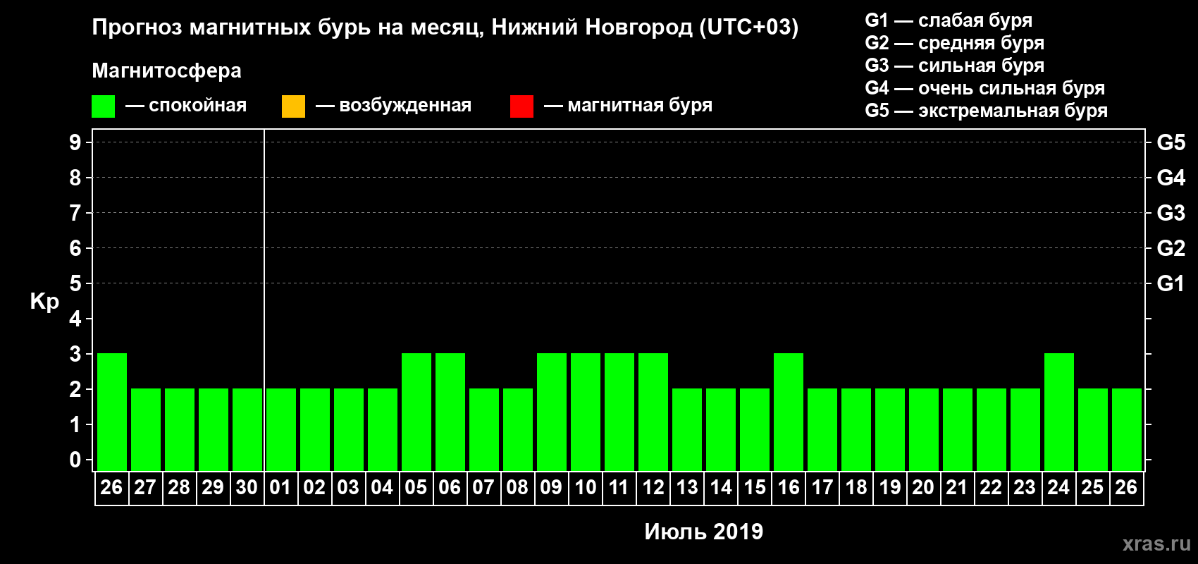 Прогноз магнитных бурь Нижнем Новгороде — 26 июня 2019 года