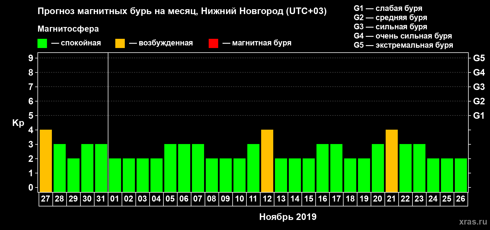 Прогноз магнитных бурь Нижнем Новгороде — 27 октября 2019 года