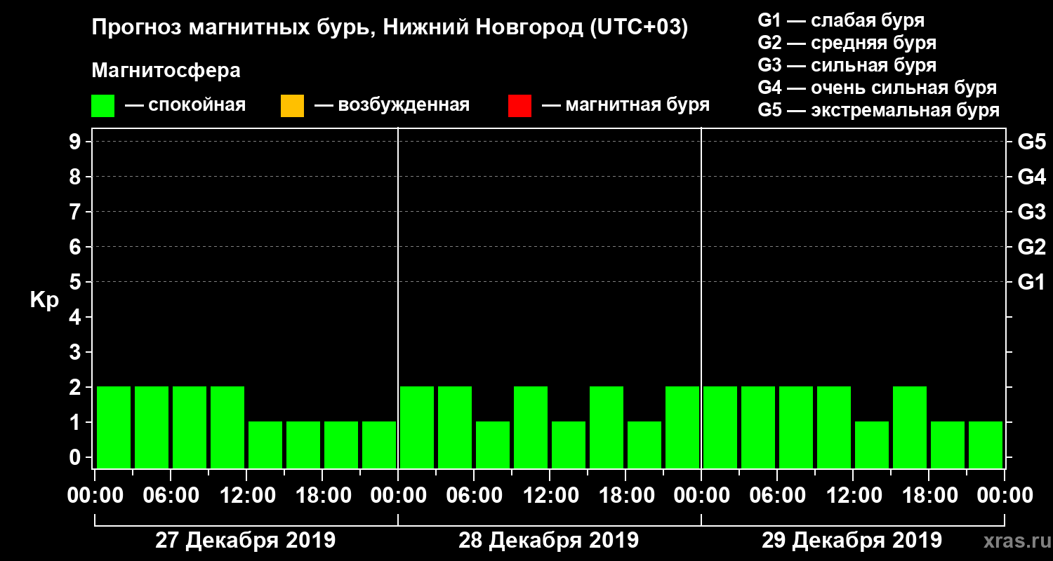 Прогноз магнитных бурь Нижнем Новгороде — 27 декабря 2019 года