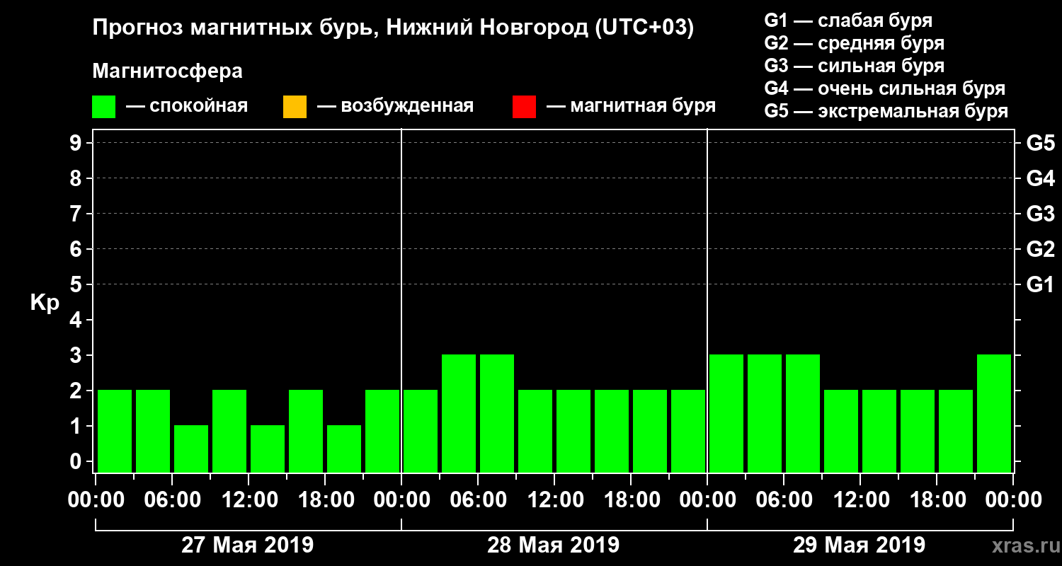 Прогноз магнитных бурь Нижнем Новгороде на 27 мая 2019 года