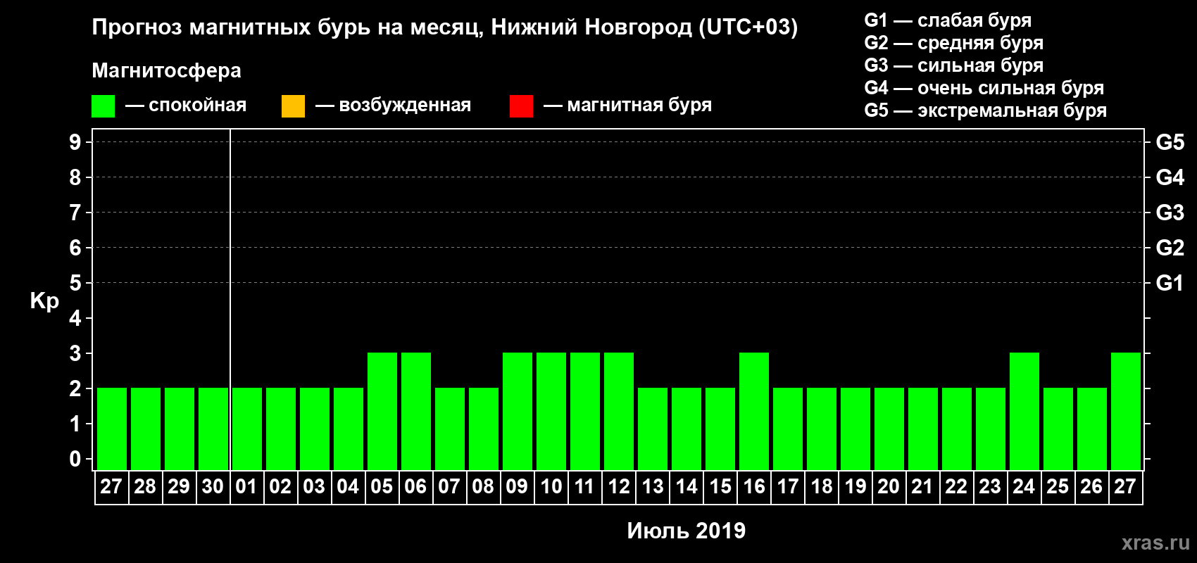 Прогноз магнитных бурь Нижнем Новгороде — 27 июня 2019 года