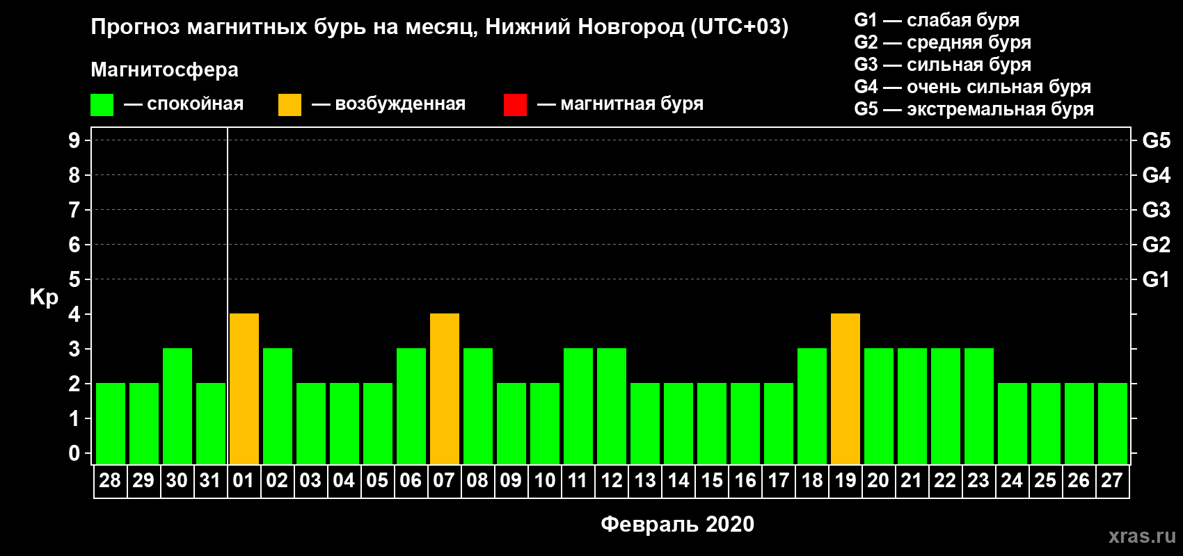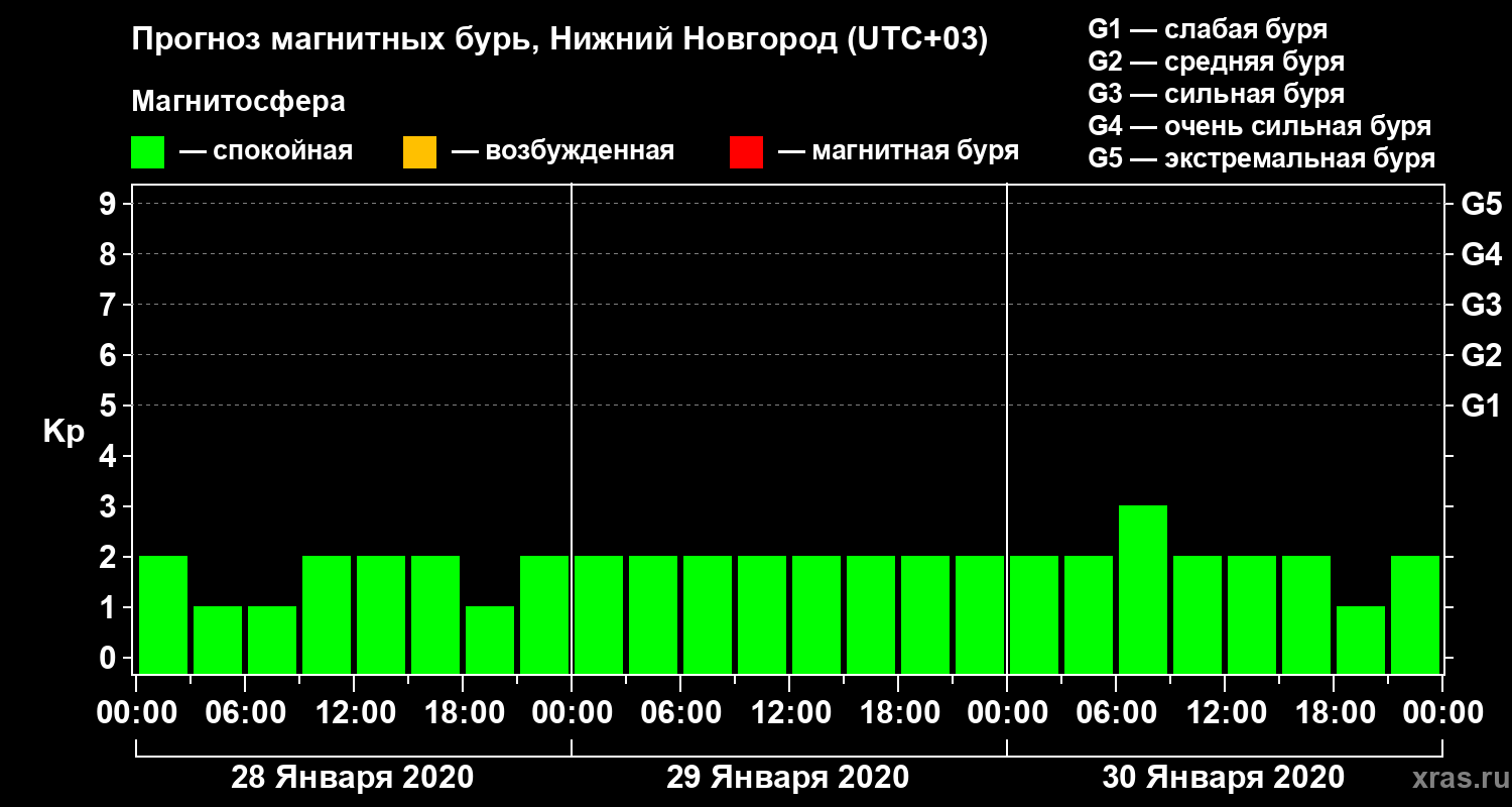 Прогноз магнитных бурь Нижнем Новгороде на 28 января 2020 года