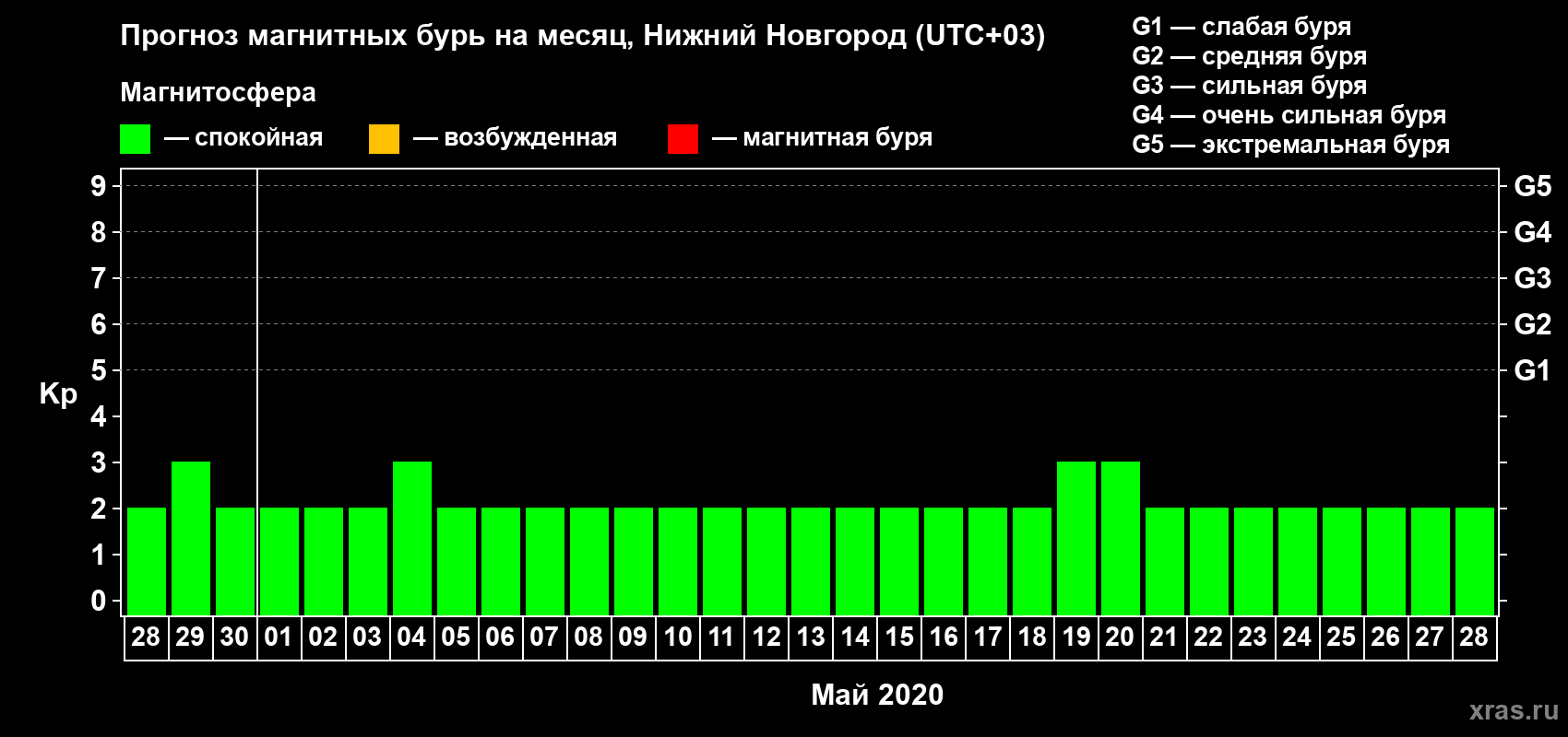 Прогноз магнитных бурь Нижнем Новгороде на 28 апреля 2020 года
