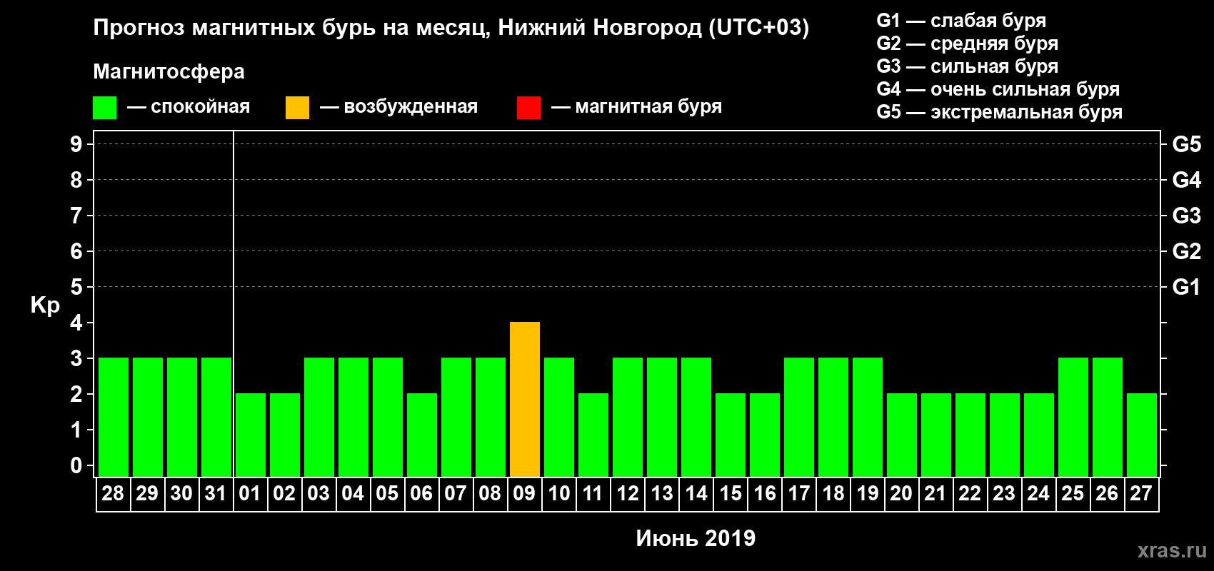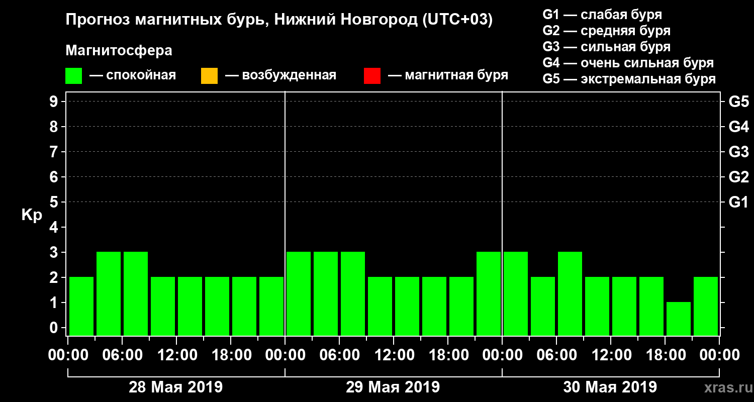 Прогноз магнитных бурь Нижнем Новгороде — 28 мая 2019 года