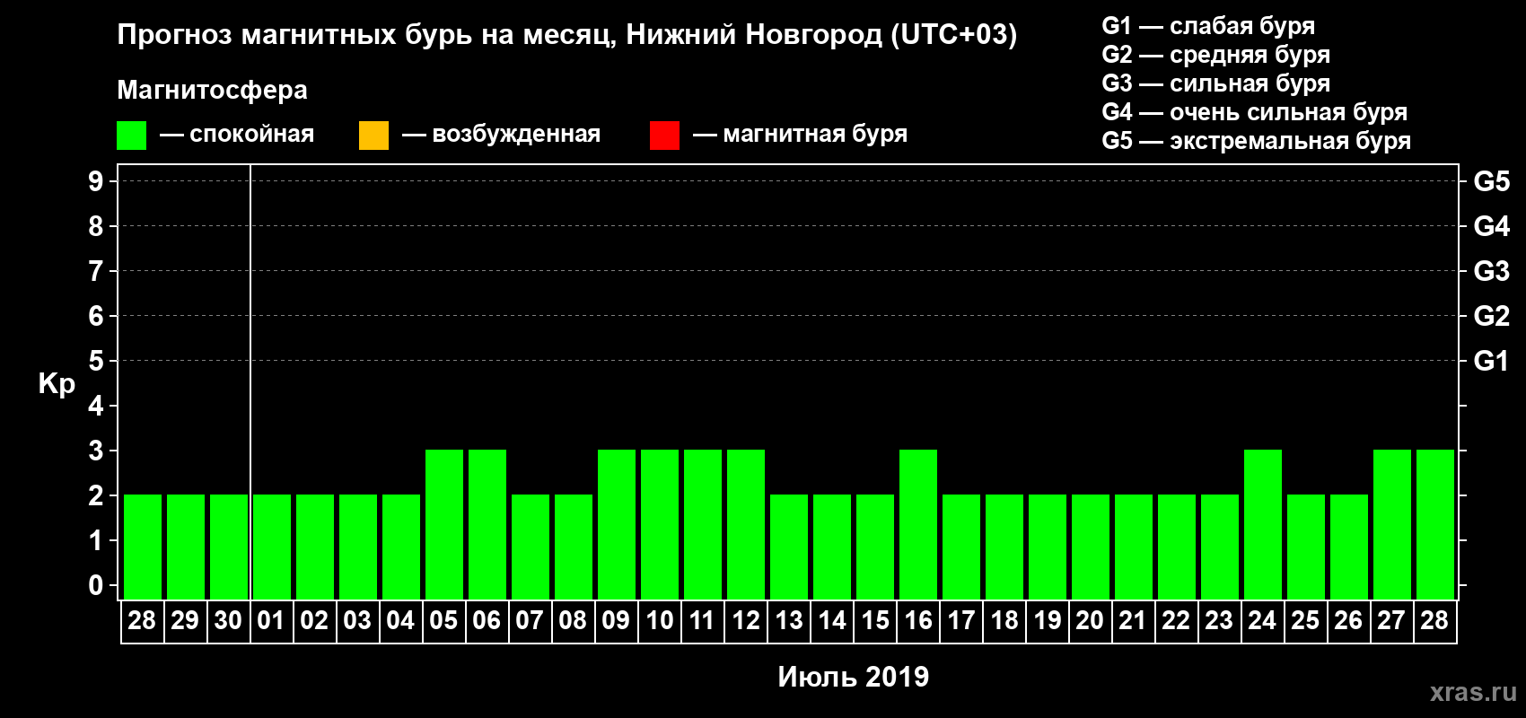 Прогноз магнитных бурь Нижнем Новгороде — 28 июня 2019 года