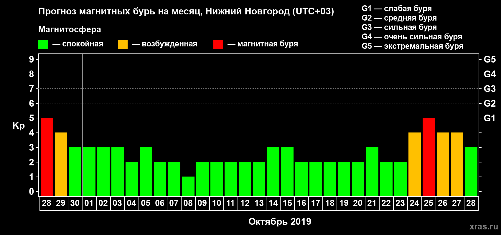 Прогноз магнитных бурь Нижнем Новгороде — 28 сентября 2019 года