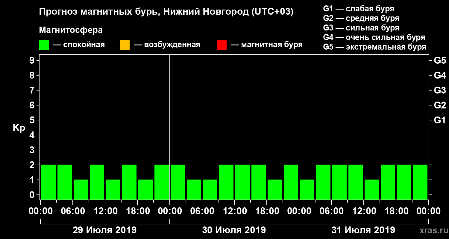 Прогноз магнитных бурь Нижнем Новгороде — 29 июля 2019 года
