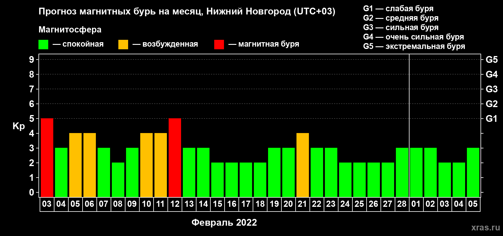 Прогноз магнитных бурь Нижнем Новгороде на 3 февраля 2022 года