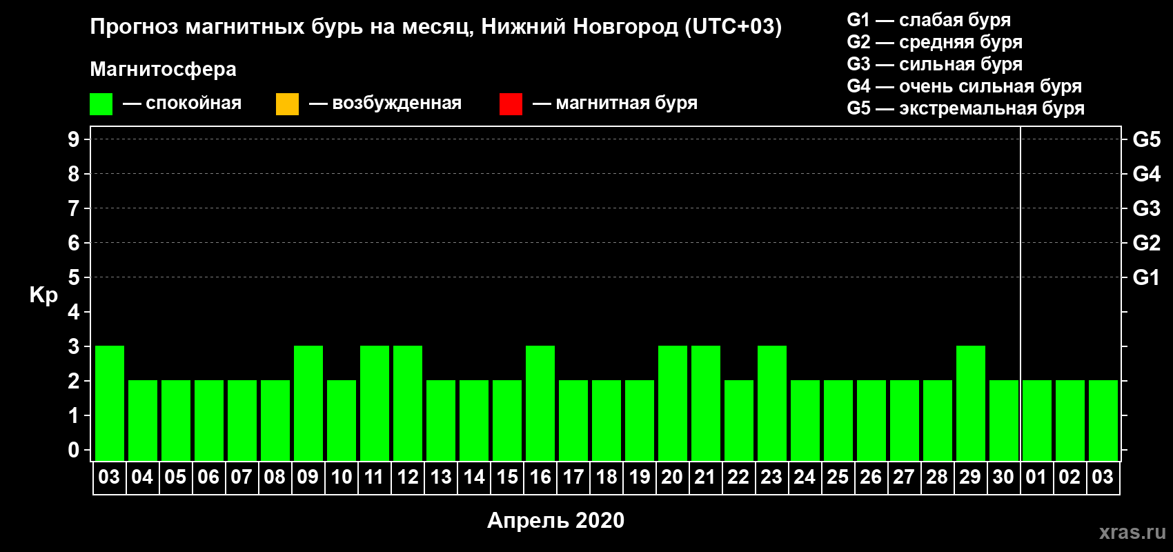 Прогноз магнитных бурь Нижнем Новгороде — 3 апреля 2020 года