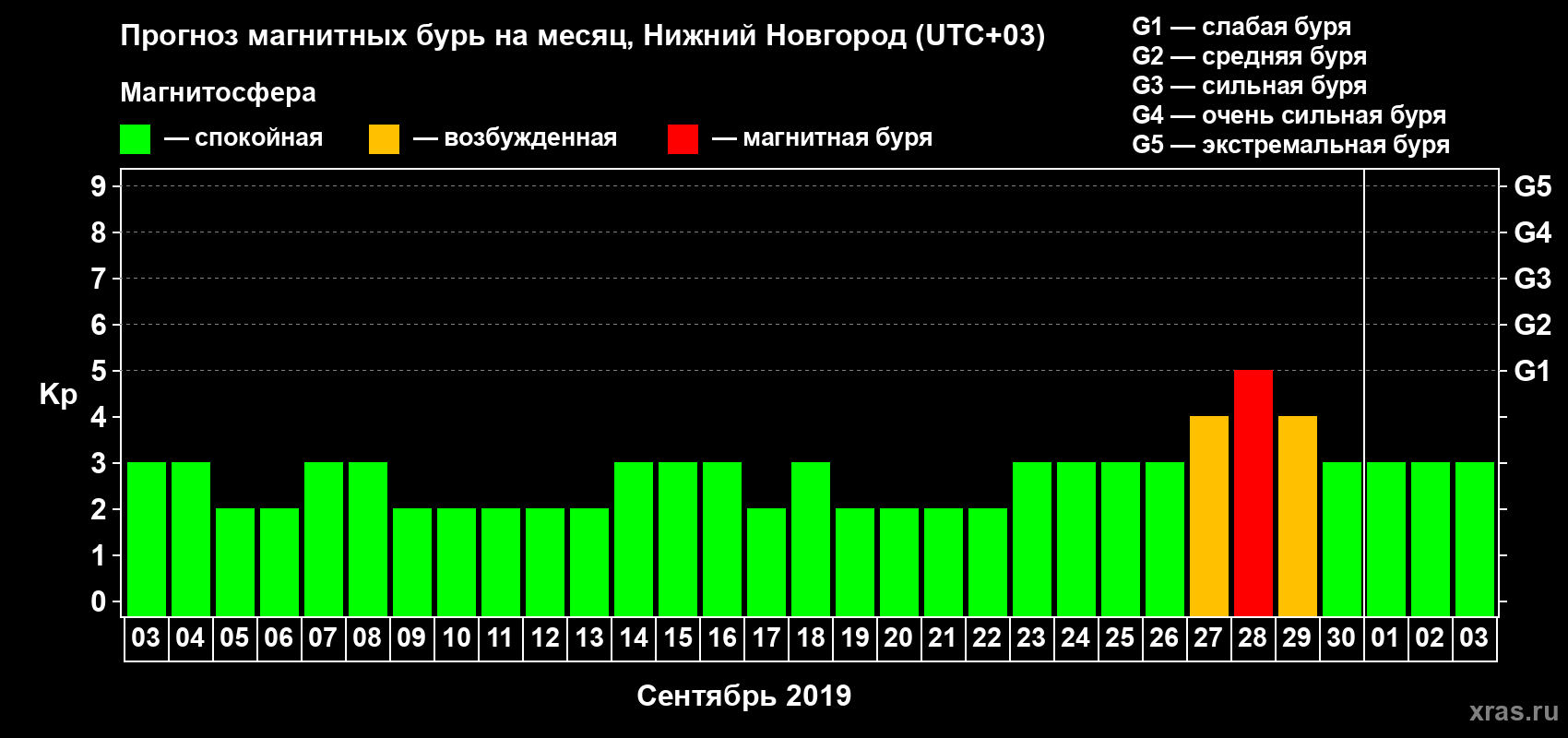 Прогноз магнитных бурь Нижнем Новгороде на 3 сентября 2019 года