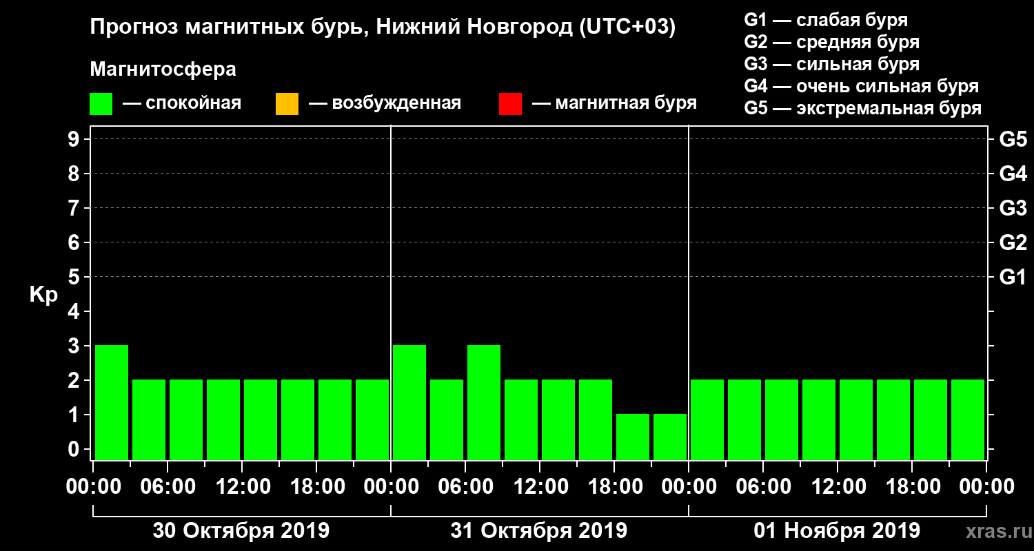 Прогноз магнитных бурь Нижнем Новгороде — 30 октября 2019 года