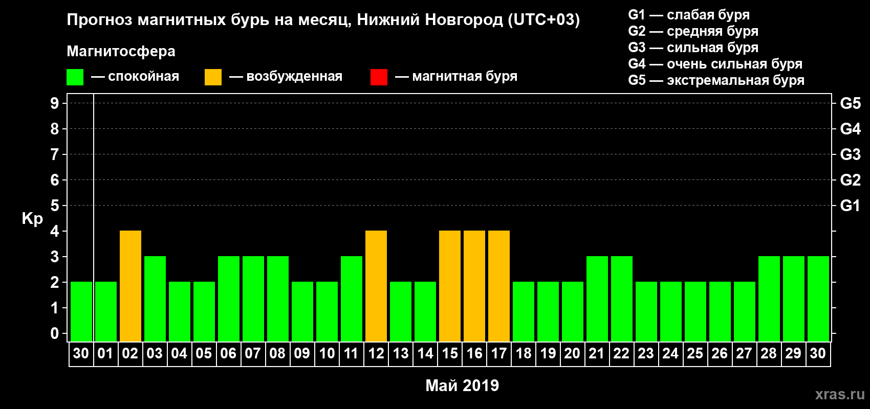 Прогноз магнитных бурь Нижнем Новгороде — 30 апреля 2019 года