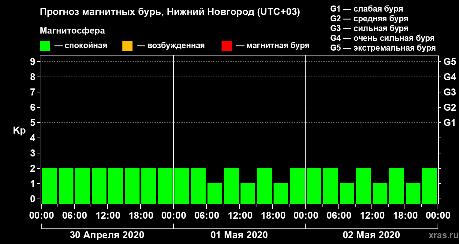 Прогноз магнитных бурь Нижнем Новгороде на 30 апреля 2020 года