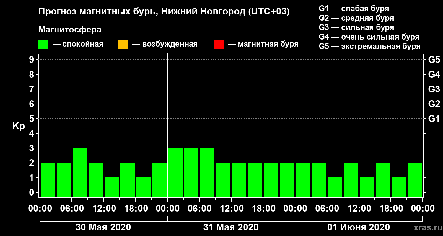 Прогноз магнитных бурь Нижнем Новгороде — 30 мая 2020 года