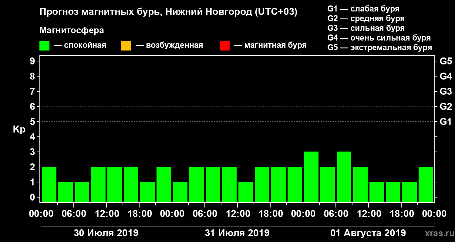 Прогноз магнитных бурь Нижнем Новгороде на 30 июля 2019 года