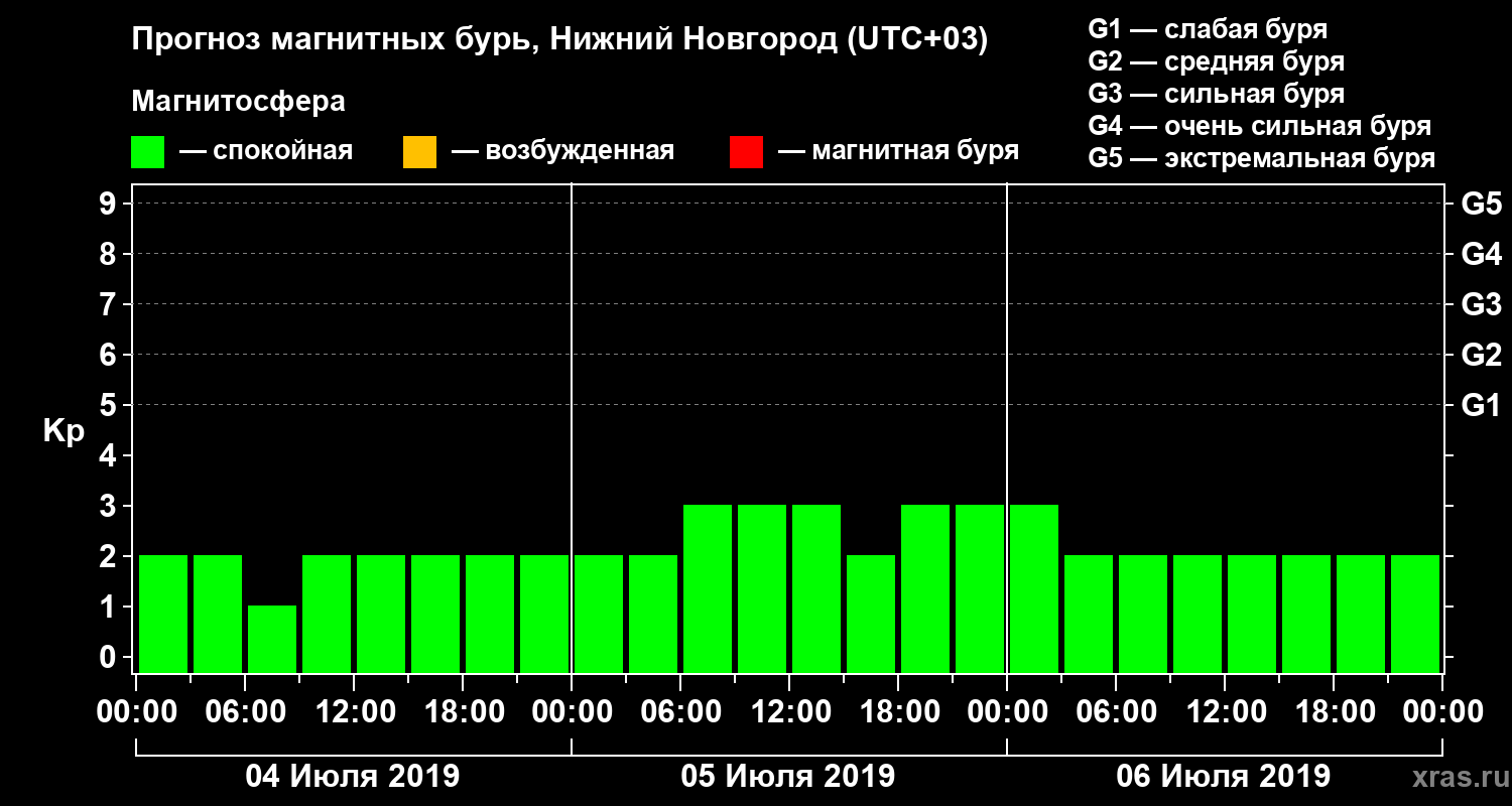 Прогноз магнитных бурь Нижнем Новгороде на 4 июля 2019 года