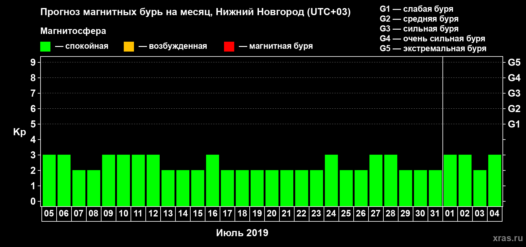 Прогноз магнитных бурь Нижнем Новгороде на 5 июля 2019 года