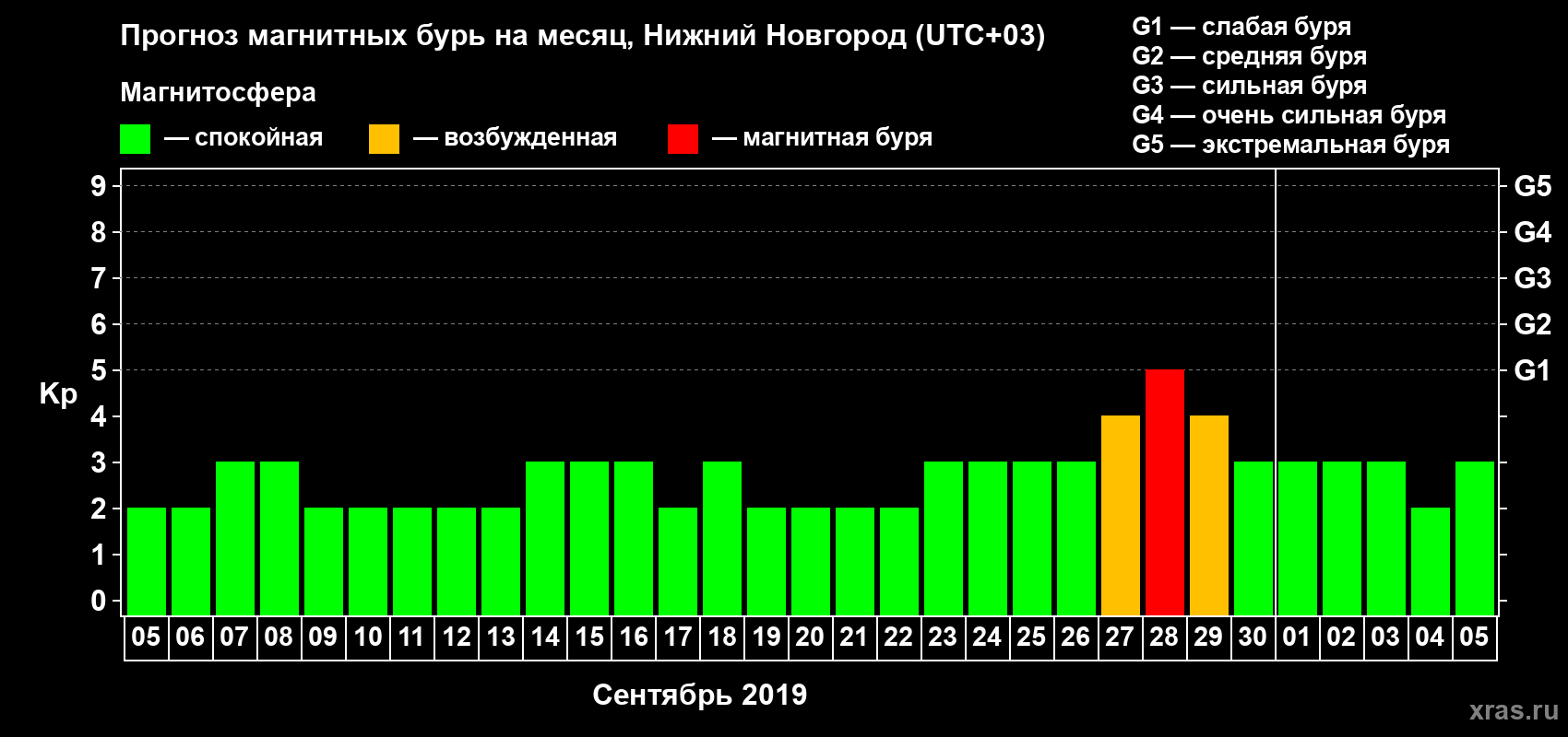Прогноз магнитных бурь Нижнем Новгороде на 5 сентября 2019 года